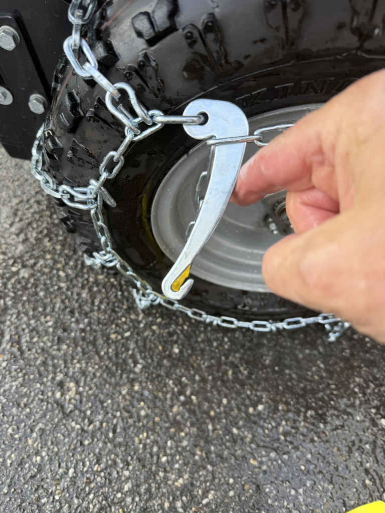 Denn die Ketten einhängen und mit dem Klapp-Hebel-Verschluss spannen.